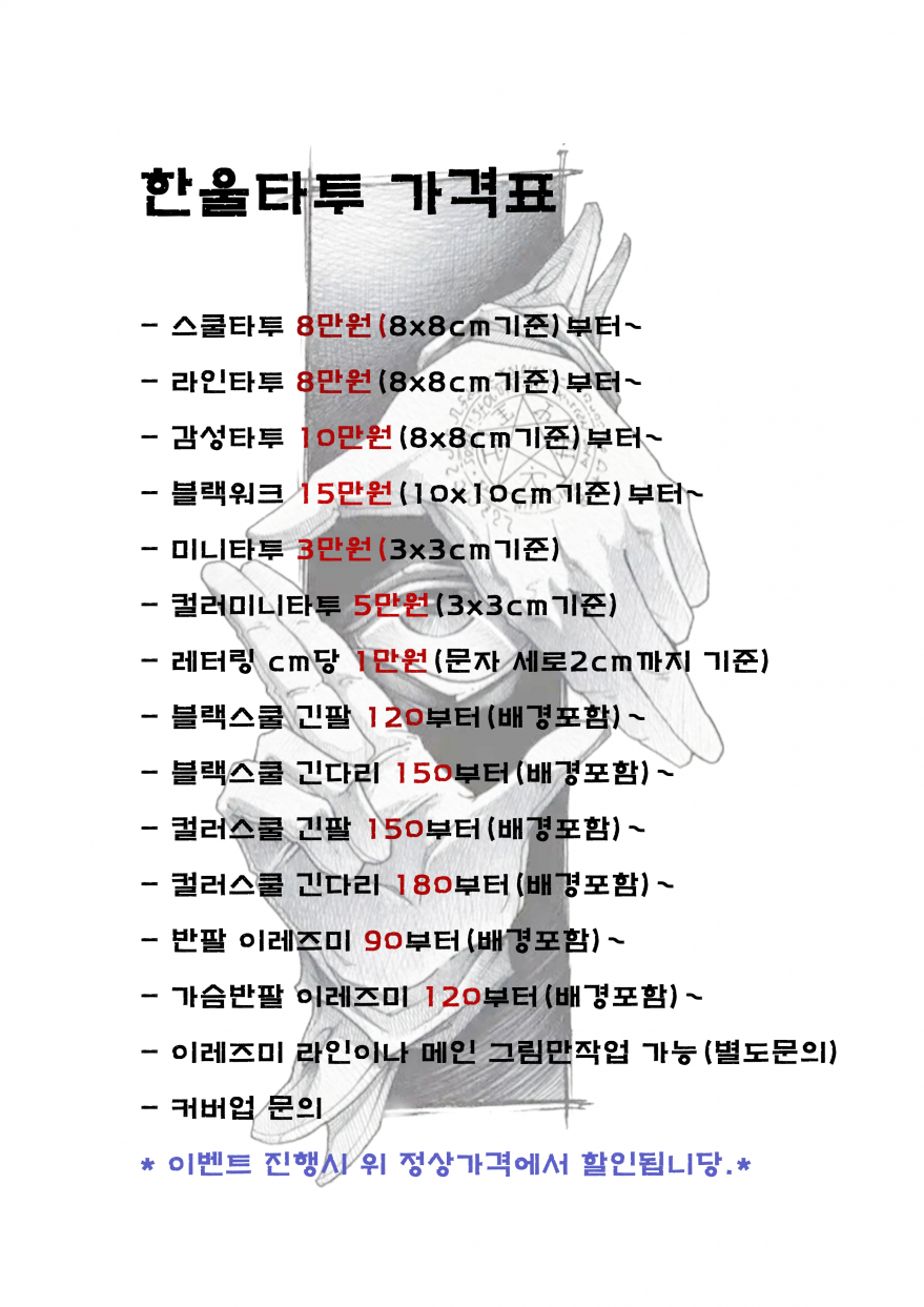 6월 타투 모든 장르시술 전품목 30% 할인