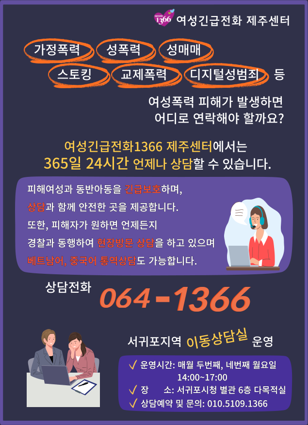 365일 24시간 여성폭력피해 상담-1366 제주센터 페이지 정보 작성자 dOOOOOOO3 작성일23-06-09 17:35 조회4,635회 연락처 010-8653-8893 관련링크 본문 365일 24시간 여성폭력상담 및 보호 가능함. 이전글 다음글 목록