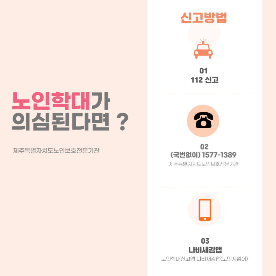 [제주특별자치도노인보호전문기관]노인학대가 의심된다면? 페이지 정보 작성자 제OO보 작성일23-04-28 14:14 조회4,737회 연락처 010---- 관련링크 본문 노인학대가 의심된다면? 이전글 다음글 목록