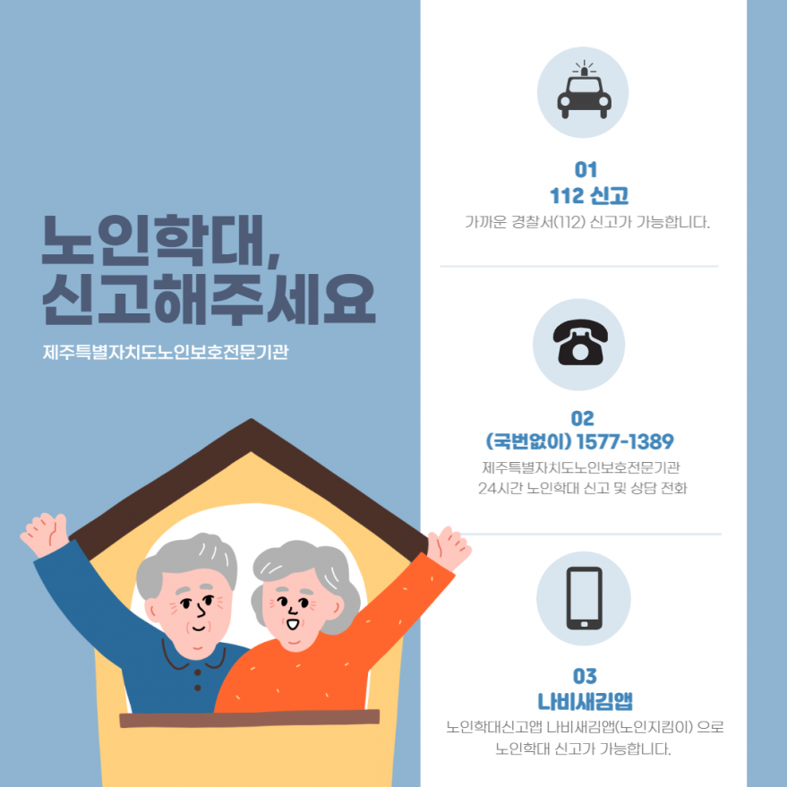 [제주특별자치도노인보호전문기관] 노인학대, 신고해주세요 페이지 정보 작성자 제OO보 작성일23-02-09 09:58 조회4,540회 연락처 010-9731-1126 관련링크 본문 유난히 추웠던 1월이 지나고 따뜻한 봄이 기다려지는 2월이 왔습니다. 2월에는 더욱 행복과 행운이 가득하기를 바랍니다. - 이전글 다음글 목록