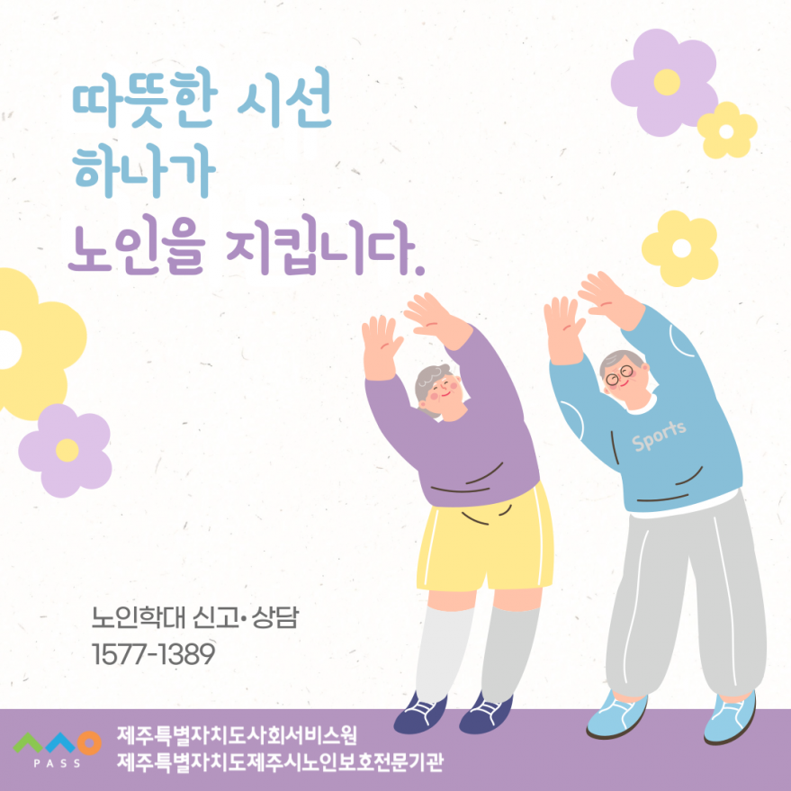 [제주특별자치도제주시노인보호전문기관] 6월 노인학대예방 포스터 페이지 정보 작성자 제OOOOOOOOOOOOOOOO관 작성일25-06-11 09:13 조회2,769회 연락처 010-4690-1389 관련링크 본문 안녕하세요~ 제주시노인보호전문기관에서 6월 노인학대예방포스터 공유드립니다~ 우리 곁의 어르신들이 따뜻한 말 한마디에 웃을 수 있도록 존중과 배려의 마음을 전해주세요 이전글 다음글 목록