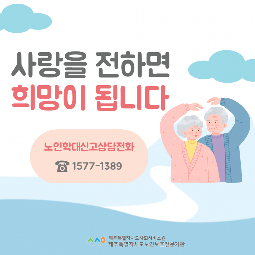 [제주특별자치도노인보호전문기관]사랑을 전하면 희망이 됩니다. 페이지 정보 작성자 제OO보 작성일22-09-26 09:49 조회4,835회 연락처 010-0000-0000 관련링크 본문 사랑을 전하면 희망이 됩니다. 이전글 다음글 목록