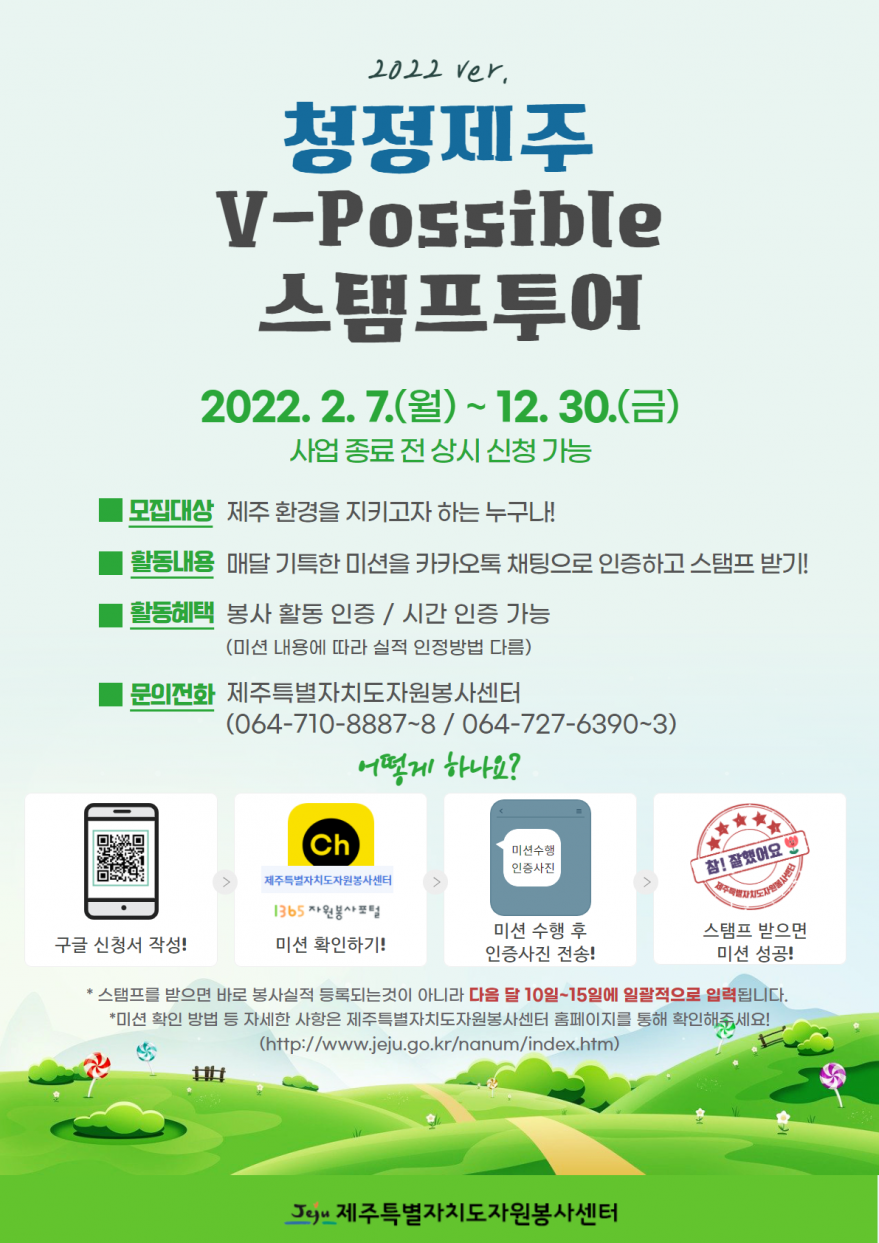 2022 청정제주 V-Possible 스탬프 투어 비대면 자원봉사자를 모집합니다~