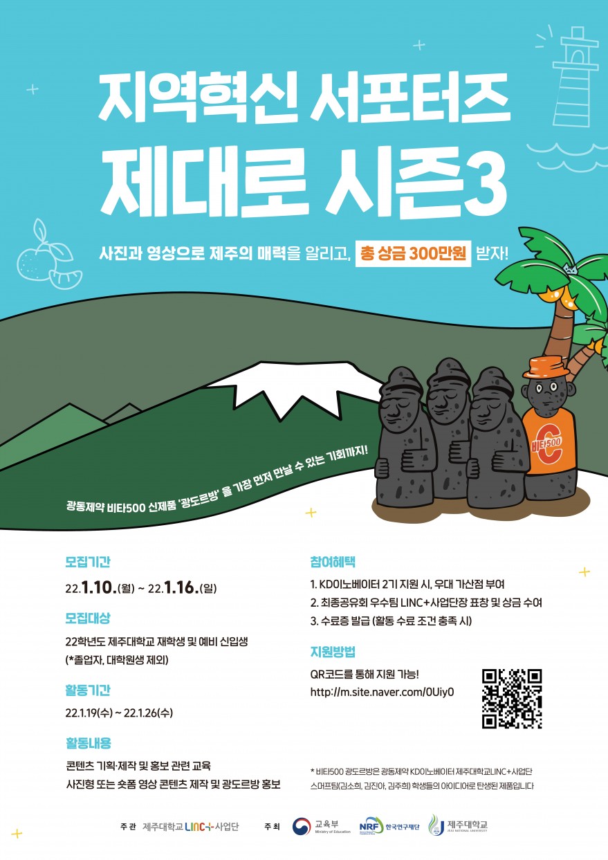 참여만으로도 스펙 제대로 쌓을 수 있는 기회! #총상금300만원 #광동제약신제품홍보기회 페이지 정보 작성자 hOOOOO2 작성일22-01-10 16:36 조회4,705회 연락처 010-8281-6828 관련링크 본문 제주의 매력을 누.구.보.다 잘 알릴 수 있는22학년도 제주대학교 재학생 및 예비 신입생 이라면 누구든지 지원가능 이전글 다음글 목록