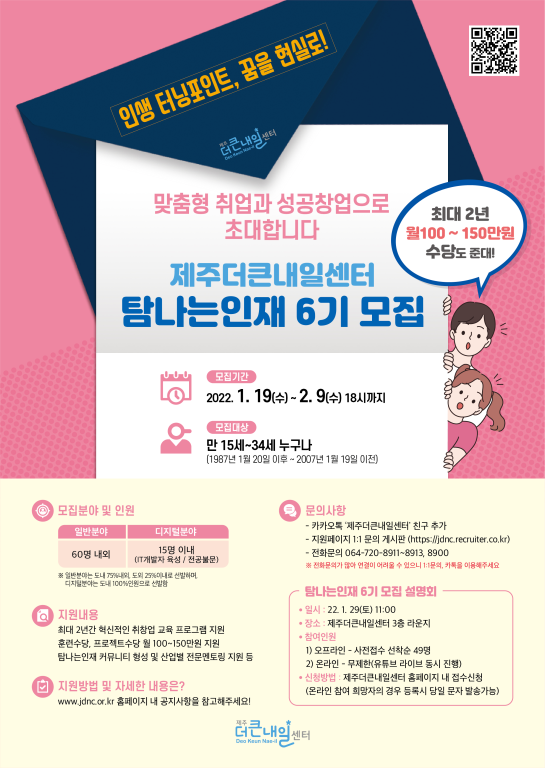 맞춤형 취업, 성공 창업으로 초대합니다![제주더큰내일센터 탐나는인재 6기 모집]