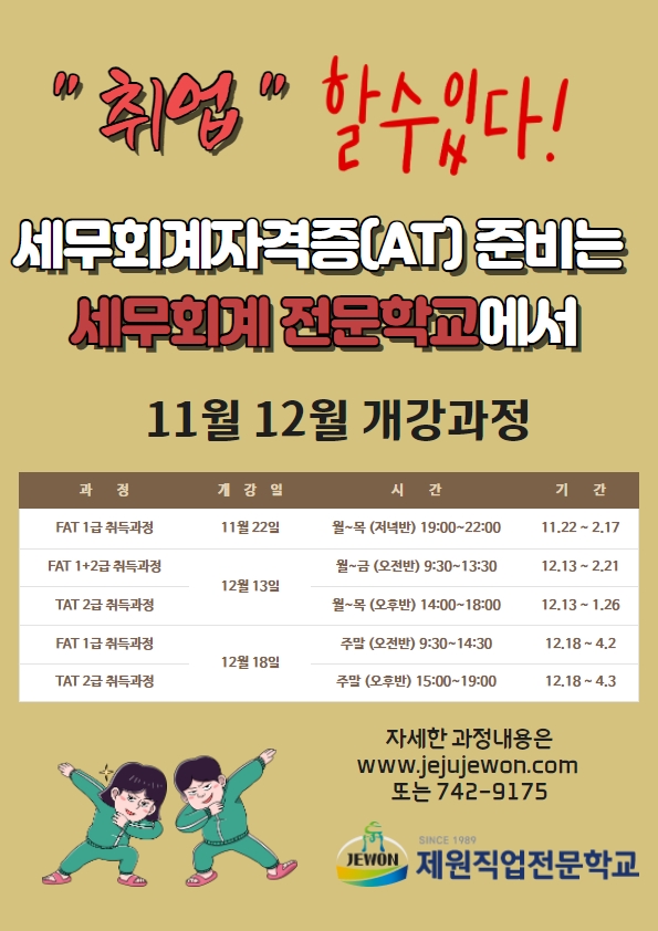 2. 문의 064-742-9175 / 카카오톡채널 '제원직업전문학교' 검색 / 본교 홈페이지 www.jejujewon.com 공지사항참조