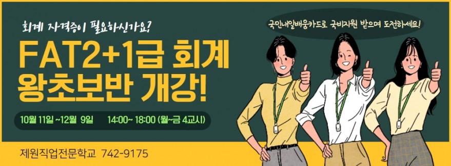 10월 11일 개강! 회계 왕초보반! FAT 2+1급(전산회계2+1급) 모집중 !