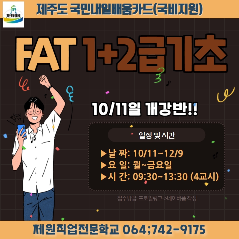 국비지원! FAT 2+1(전산회계 1급) 10월 9일 개강반 모집중(왕초보반)