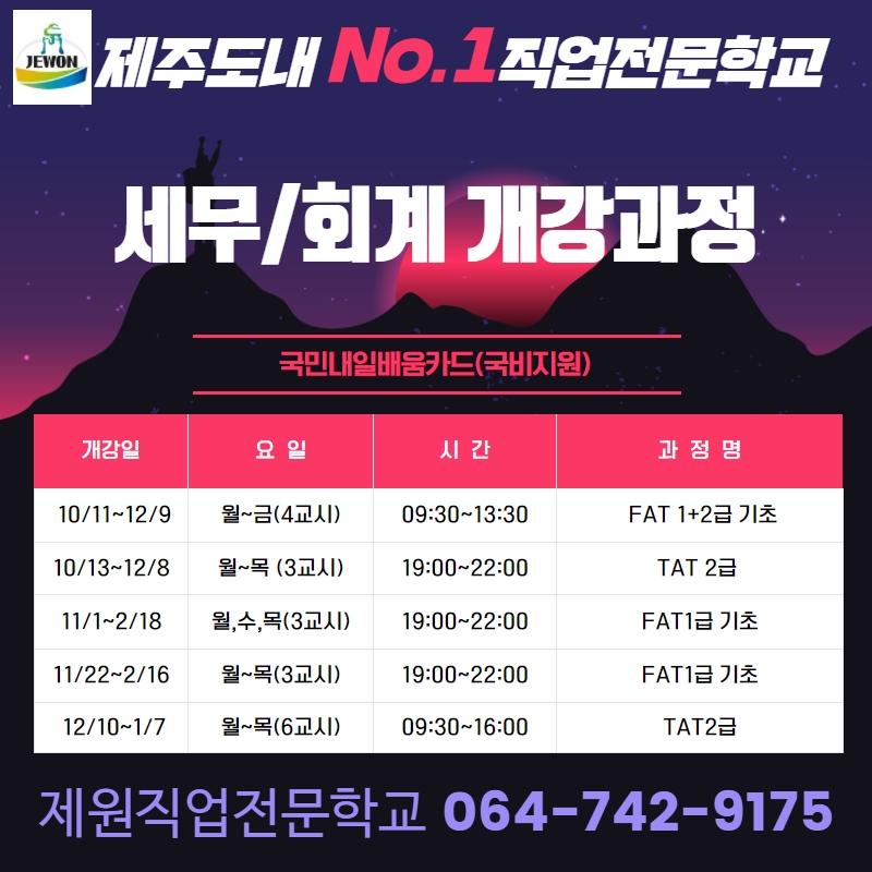(주)제원직업전문학교(제주시 노연로 119(뉴월드마트 맞은편)) (064-742-9175)