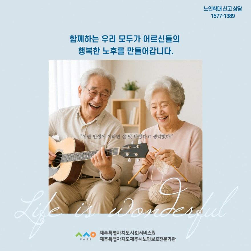 [제주특별자치도제주시노인보호전문기관] 9월 노인학대예방 포스터 페이지 정보 작성자 제OOOOOOOOOOOOOOOO관 작성일25-09-01 16:02 조회1,230회 연락처 010-4690-1389 관련링크 본문 안녕하세요. 제주특별자치도제주시노인보호전문기관에서 9월 노인학대예방포스터 공유드립니다~“함께하는 우리 모두가 어르신들의 행복한 노후를 만들어갑니다.”⠀어르신들이 존중받고, 안전하게 살아갈 수 있는 사회는 우리 모두의 관심과 참여로 만들어집니다.⠀ 이전글 다음글 목록